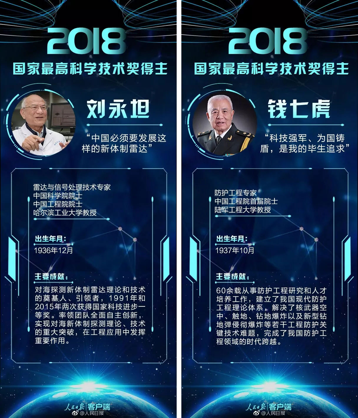 前不久,2018年國家最高科學技術獎正式揭曉,八十高齡的劉永坦和錢七虎兩位院士憑借在國防領域領域所取得的突破性技術創新,喜摘獎項。