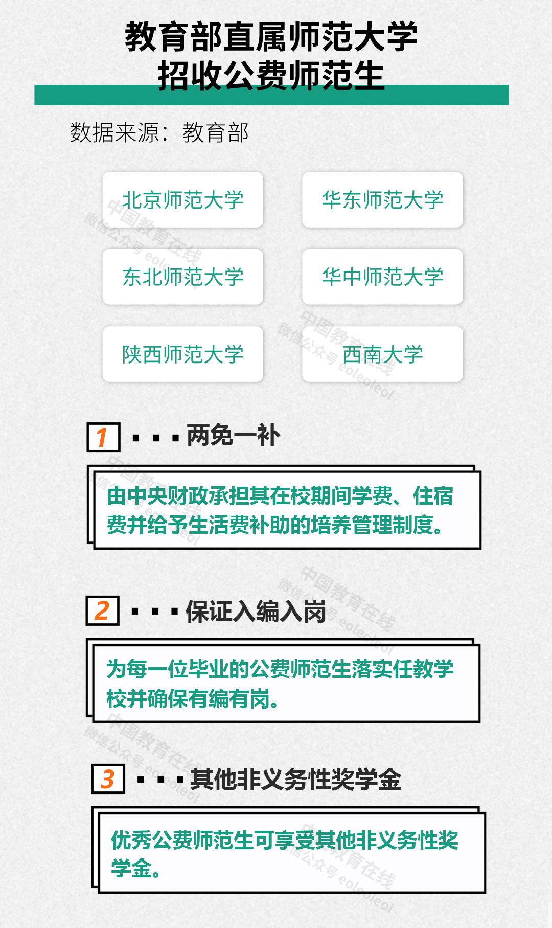 2018年,教育部改進完善教育部直屬師范大學師范生免費教育政策,將“免費師范生”改稱為“公費師范生”。