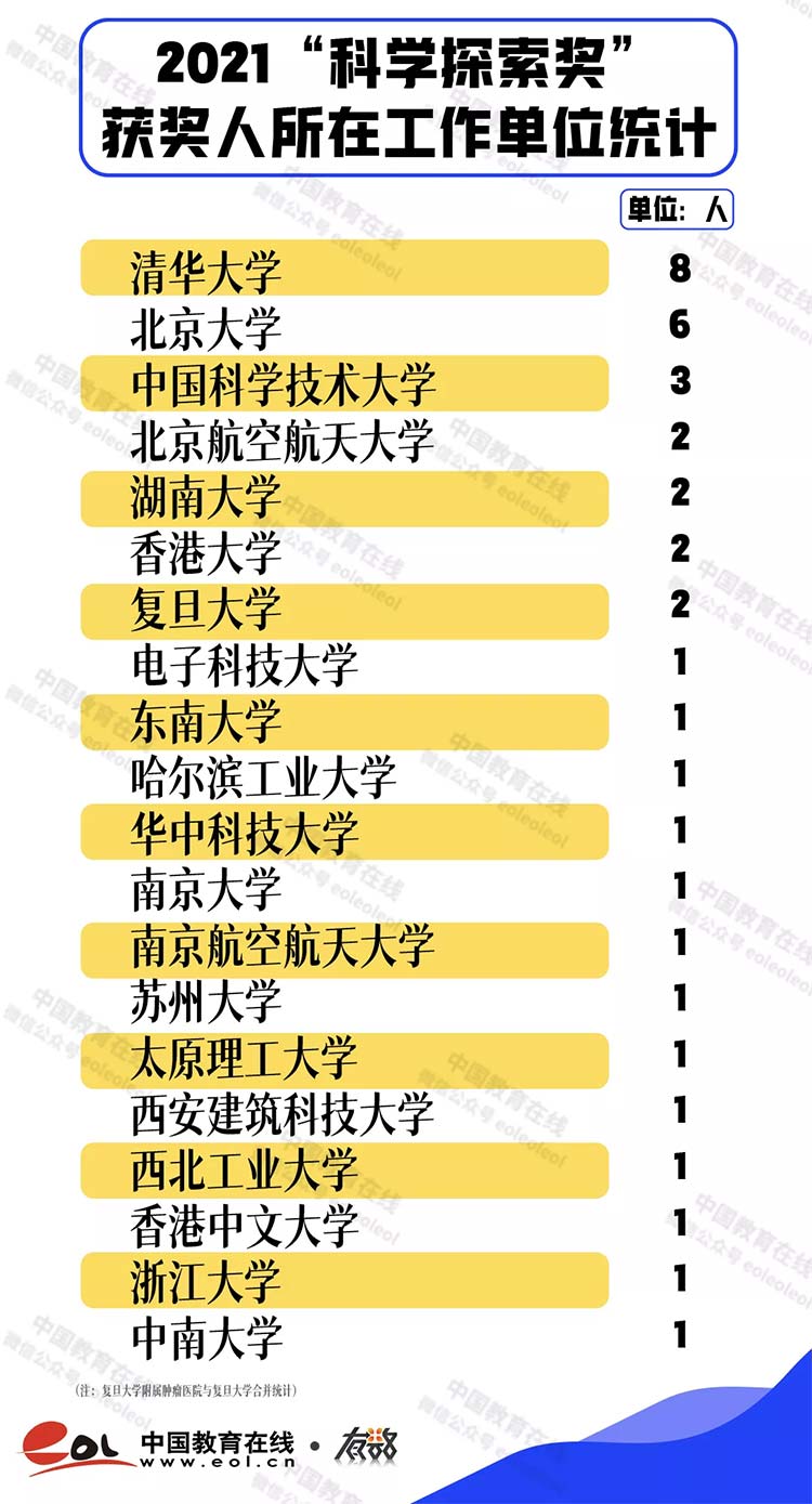 從三年的獲獎名單來看,高校共有116人獲獎,清華大學、北京大學的獲獎人數最多,分別有24位、23位科學家獲獎,其次,中國科學技術大學有9位科學家獲此殊榮。