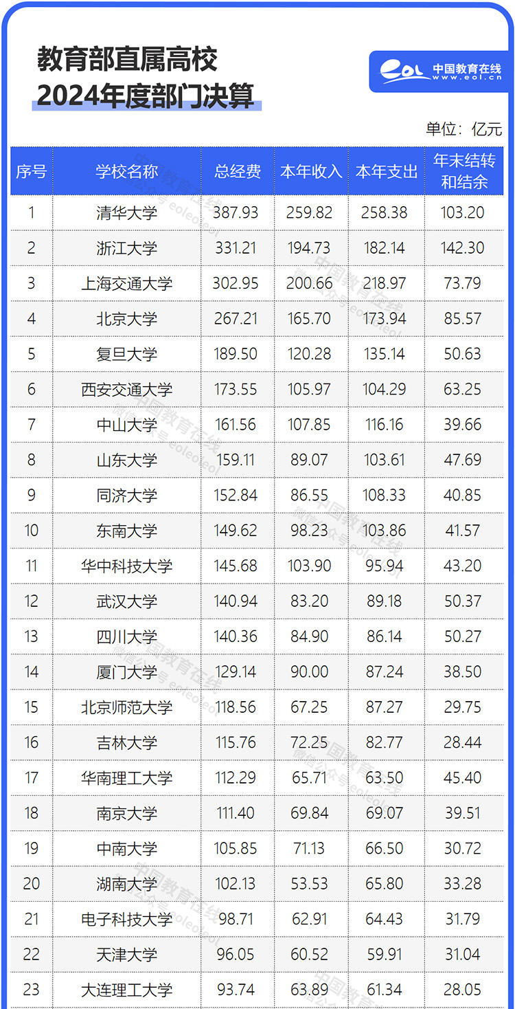 20所超百億!75所教育部直屬高校公布2024年決算