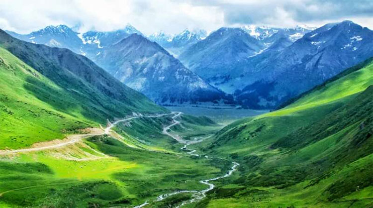在這條公路上,一日見四季,十里不同天,冬夏渾然一體:剛剛穿行鳥語花香的叢林草原,轉瞬便跨越冰點以下的雪山之巔。