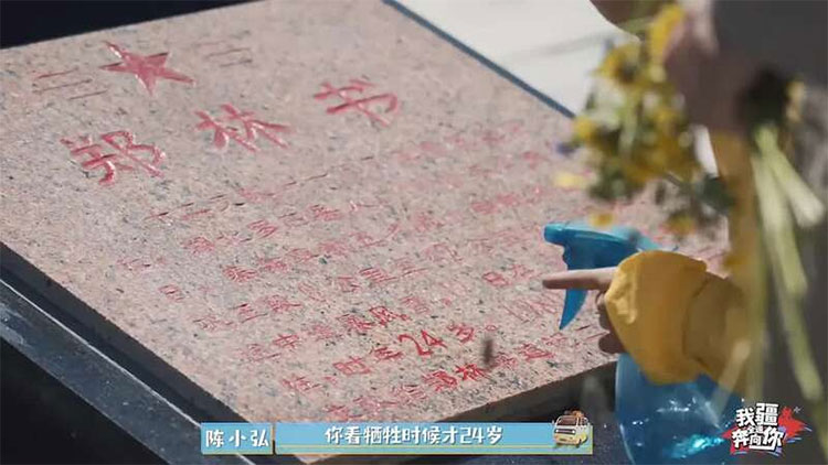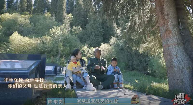 在喬爾瑪烈士陵園里,兄妹倆陪著爸爸認真地干活。當掃到鄭林書的墓碑前時,哥哥陳煜昊小聲向賀瑤講起了鄭林書爺爺的故事。