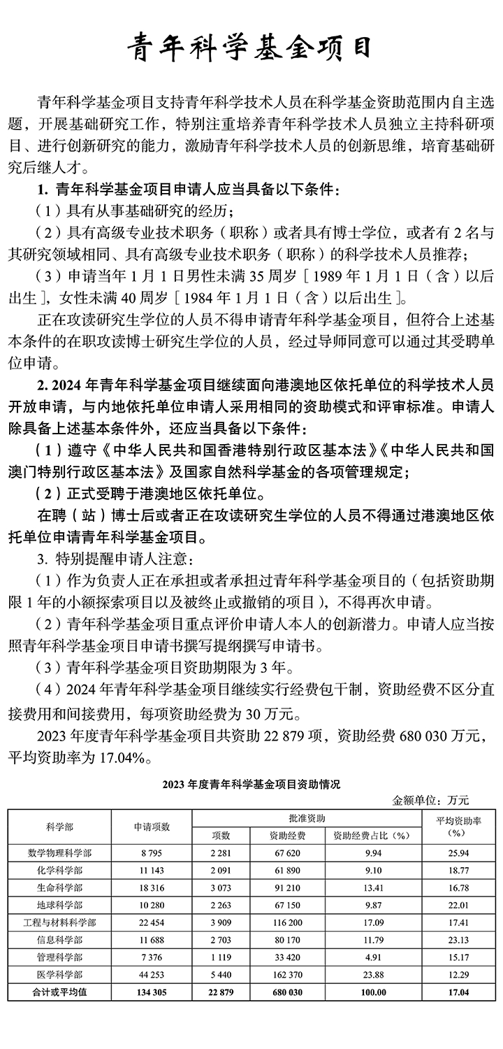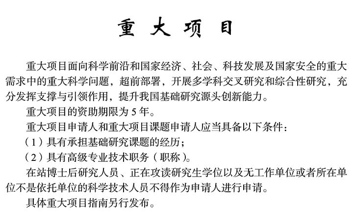 1. 青年科學基金項目、優秀青年科學基金項目、國家杰出青年科學基金項目、創新研究群體項目:同類型項目作為項目負責人僅能獲得 1 次資助。