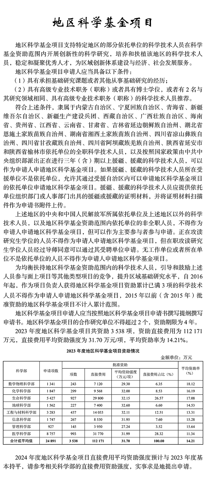 《2024年度國家自然科學基金項目指南》申請規定