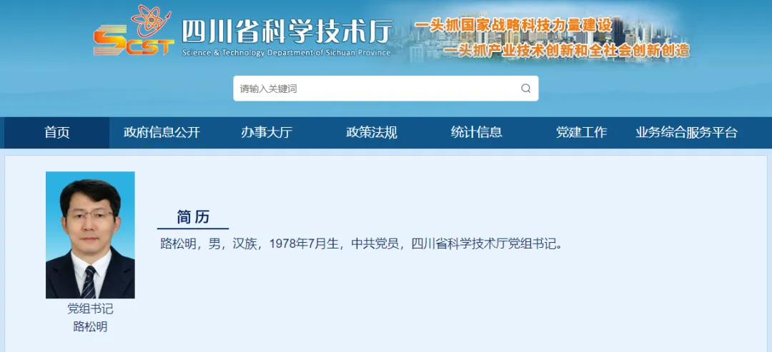 12月17日,據四川省科學技術廳官網消息,路松明任四川省科學技術廳黨組書記。