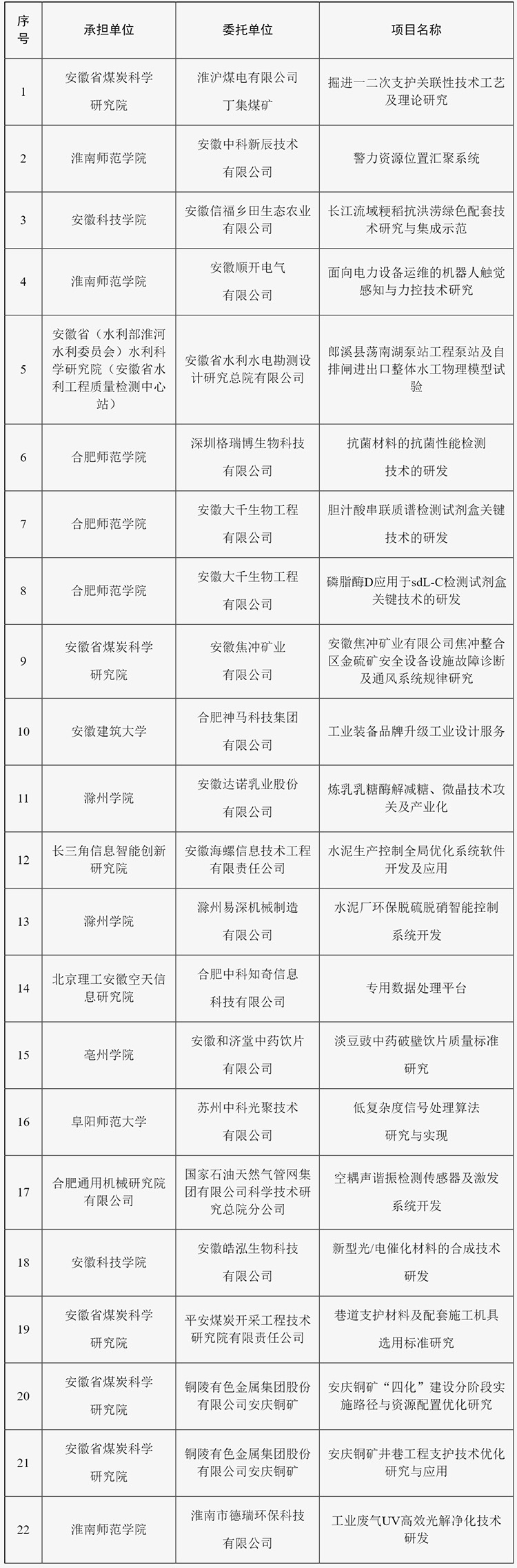 安徽發布高校科研院所橫向課題備案項目立項計劃