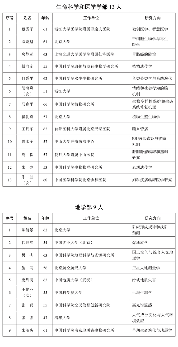 關于公布2025年中國科學院院士增選當選院士名單的公告