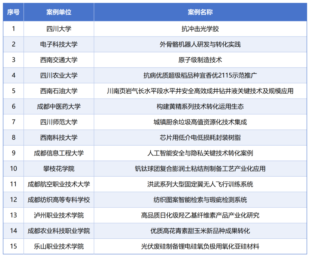 15所高校上榜!四川省高校科技成果轉化典型案例
