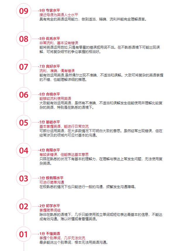 先來看看雅思官方給出的1-9分代表的能力水平: