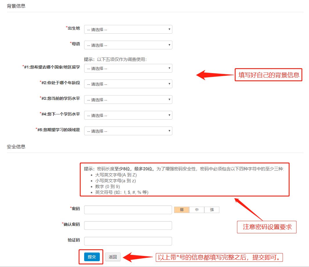 3.在此提交的基本資料(如姓名、性別、生日、出生地、證件類型、證件號碼等)將會顯示在成績報告上,一旦提交后就不能做任何修改,請務必確保這些信息的真實性和準確性。