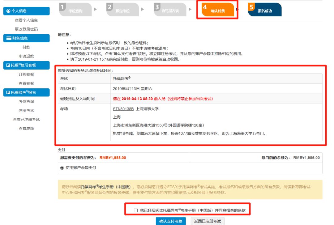 第七步、考位查詢、預定以及確認