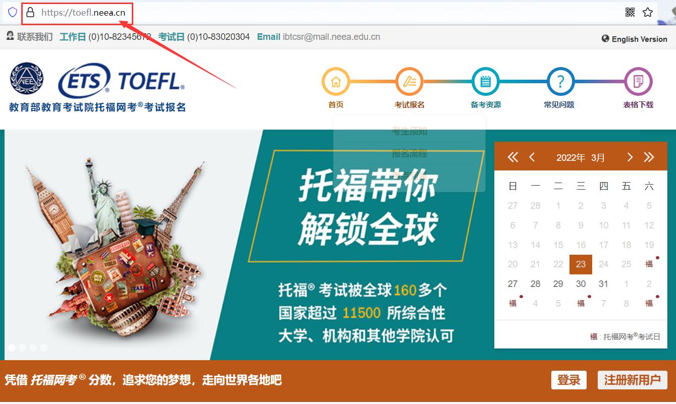 托福考試報名網址:https://toefl.neea.cn/