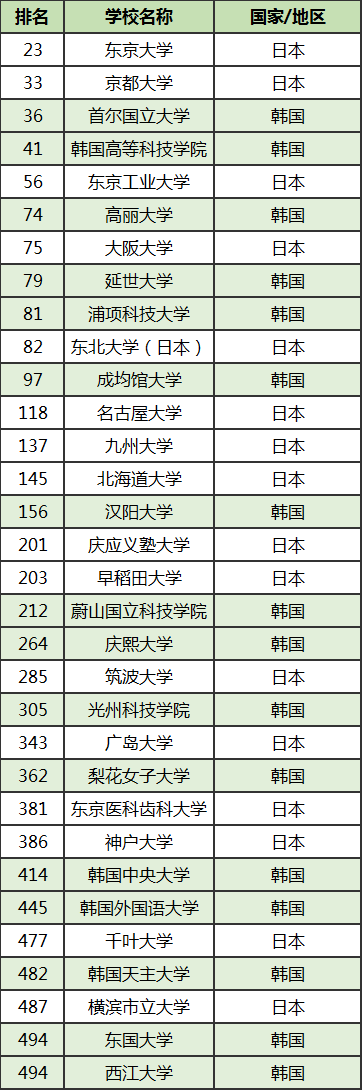 日本榜單:東京大學依舊占據榜首(第23名);東京大學、京都大學、東京工業大學、大阪大學、東北大學仍然穩居top100,還是很不錯的!