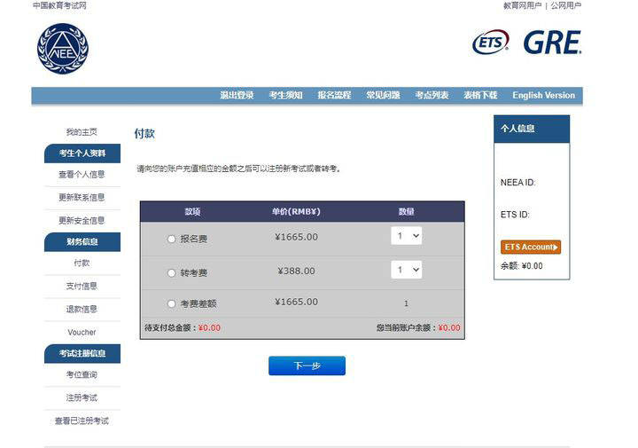 報名完成之后可以在“考試注冊信息”下方的“查看已注冊考試”看到自己已經注冊的考試的信息。另外,大家需要注意,兩次GRE考試之間至少要間隔21天。