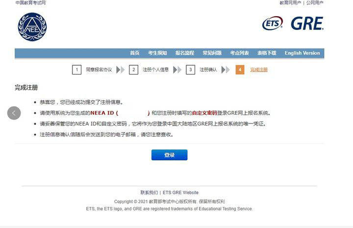 第四步,獲得自己的“NEEA ID”,要記住自己的NEEA ID,后續需要用它來登錄的。