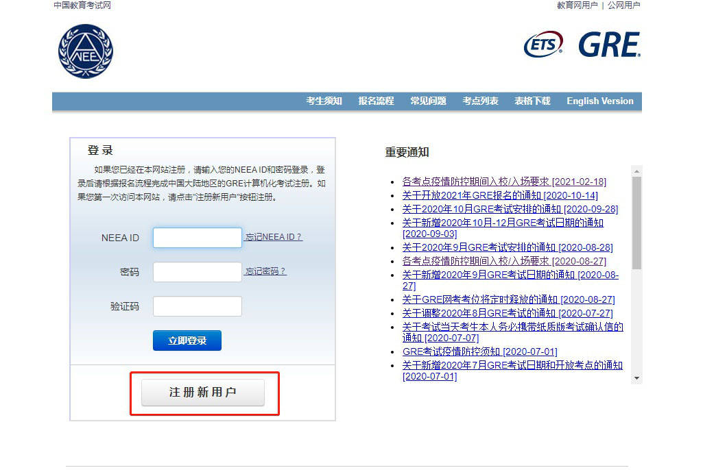 看到上述頁面之后,點擊注冊新用戶。注冊前也可以先看看重要的通知有什么需要注意的~
