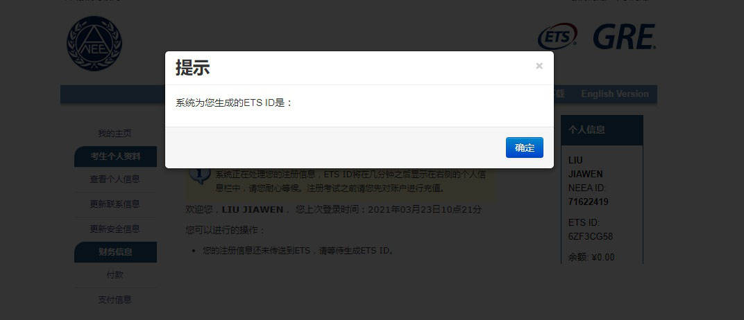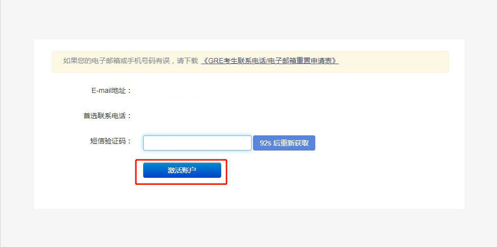 第五步,激活賬號。使用上面注冊好的NEEA ID和登錄密碼登錄,第一次登錄的時候需要激活賬號,使用自己的手機驗證碼激活就可以啦~ 激活之后就會生成一個專屬的ETS ID。到這步就已經完成GRE考試報名流程啦。