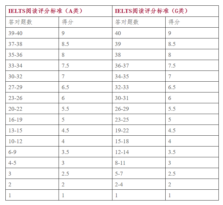 下面是具體的雅思閱讀算分方式: